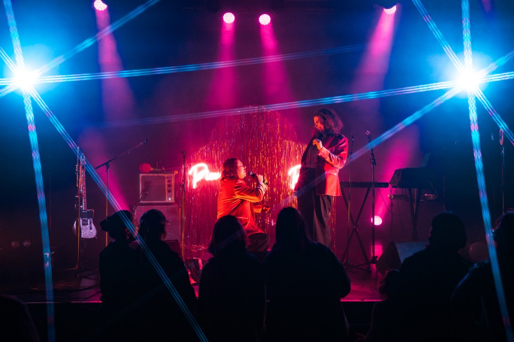 C’est tout droit sorti d’un dessin animé des années 80s que Solène et Louis (jeunes mariés) nous emmènent dans leur vie, leur vraie histoire. Boîte à rythme à la Thriller de Michael Jackson, basse robotisée, claviers cheezy de la musique Pop se mêlant à la joie de Richard Gotainer et l’auto-dérision de Philippe Katerine. Vous serez amené à chanter avec eux leurs refrains entêtants qui vous amèneront à suivre de près leur aventure.